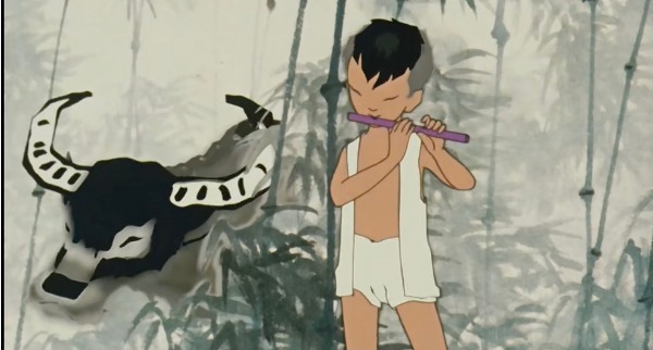 Editor Qiang Xiaobai thought that Tadpole’s Search for Mother was only about 80% complete in its ink animation skill and that the important technical innovations began with The Cowboy’s Flute (1963). Filmmakers have found that they can control the degree of blur of edges of objects by changing the focal length of the camera, thus simulating changes in ink intensity. This technology won the second prize for national scientific and technological invention and was classified as a confidential technology until 2011. It has a big influence on Chinese animation. We can see the structure and layers in the film got better.
