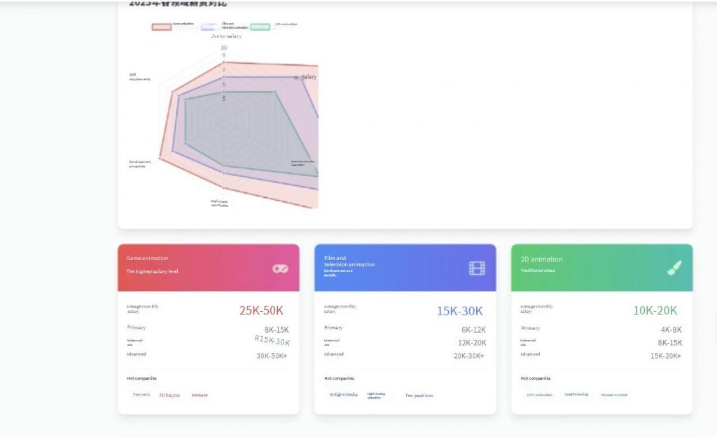 Secondly, there is the gaming industry. It offers a relatively larger number of employment opportunities, but the market is also highly saturated. Besides character design, cutscene animation, and character performance, there are roles such as art promotion and live 2D. Most of their studios are located in the same cities as animation studios, mostly in high-consumption areas. Although overtime work is common, benefits for employees at large companies tend to be relatively better.