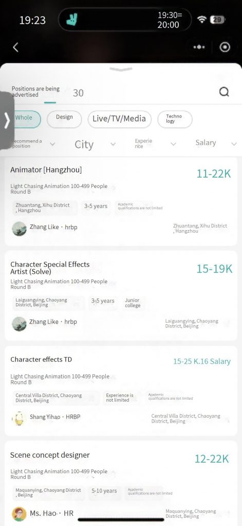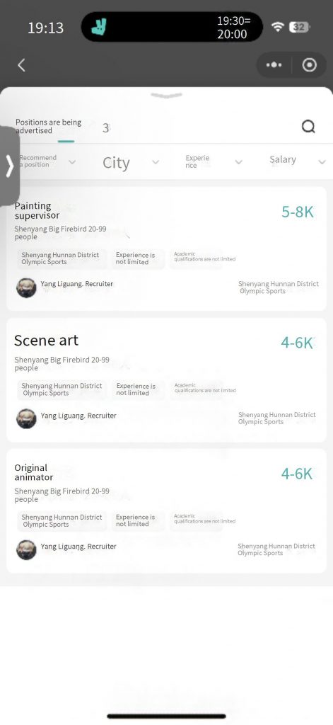 In the animation industry in China, positions without work experience requirements and those targeting fresh graduates are mostly for animators, clearing, coloring, inbetween, storyboard, and scene painting. Keyframe artists and directors, on the other hand, are mostly for those with more than three years of experience. The former offers lower salaries while the latter is relatively higher. However, I don’t meet the requirements. Therefore, I believe a feasible solution is to first apply for some available roles, such as an animator and storyboard. Then, after gaining work experience, consider promoting or trying to be a director.